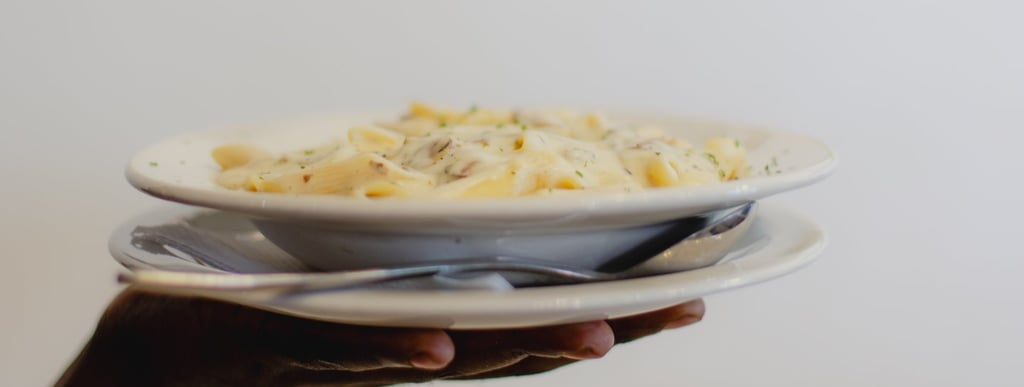 Penne with a creamy cheese sauce, woodfired, over baked with cheese